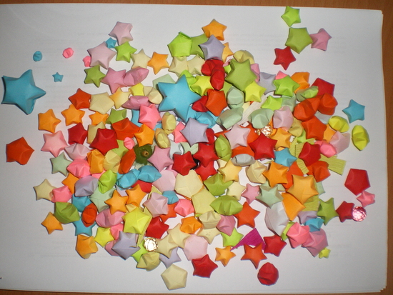 Вот и началась подготовка к Новому Году!!! В первую очередь я решила для коллег по работе сделать небольшие сувениры. И мне сразу же пришла в голову идея сделать что-то своими руками. Выбор пал на звездочки счастья. Решила начать пораньше, т.к. боюсь не успеть к праздникам. Надеюсь им понравится!!!