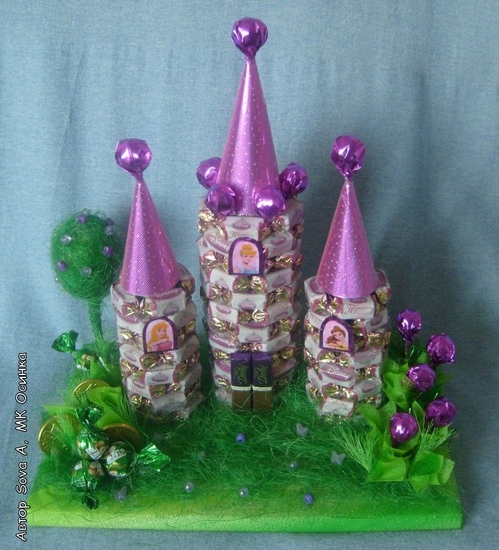 Можно использовать любые конфеты (которые любит доча), малнькие шоколадки или батончики.