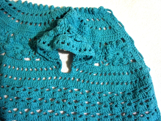 Вязала как обычную круглую кокетку, когда дошла до подмышек, разделила на 5 частей кокетку (2 рукава, спинка, 2 полочки) подмышками провязала цепочку из 4 вп и далее уже вязала без рукавов.