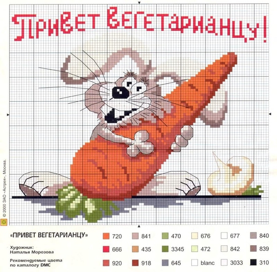 Спасибо, большое! Воспульзуюсь Вашей схемкой! Он у меня родился в год кролика и когда помогает на кухне, то мне приходится брать на 1 - 2 марковки больше