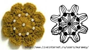 набираала цепочку из 5 петель сомкнула в круг,затем в неё лепестки из пышных столбиков соеденяла в первом кругу 2 воздушными мжду лепестками, вторй ряд также пышные столбики(лепестки)только уже 2 воздушные замыкались в первом ряду))
