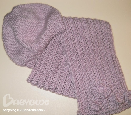 Здорово! Очень понравился комплект! У вас, случайно, не сохранилось описание берета и шарфика? У меня как раз такие ниточки лежат, только цвета другого)))