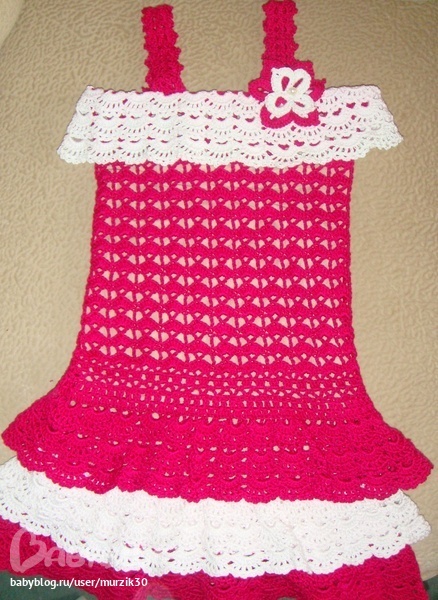Давайте девочки свяжем вот такой сарафанчик для наших дочек к 8 Марта! Хороший наряд получится на утренник в дет саду!