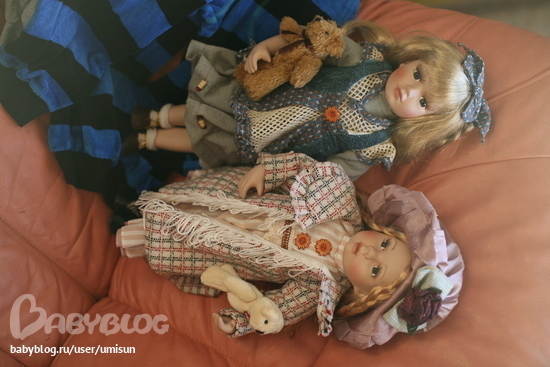 Ой, если ты выложишь, я прям с удовольствием посмотрю какие мишки получатся. Имхо, первой кукле и этот мишка очень идет :))))) А у второй немного сливается с костюмом, но тоже классный :))))) Было бы еще здорово увидеть фотки того, что было в самом начале, если они есть, конечно :))))