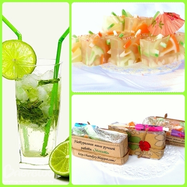 Мыло и косметика своими рукамиЗдравствуйте, заказали мне мылко с цитрусовым ароматом, а мне давно очень хотелось сделать апельсинку, ну заодно и с мятно-бергамотовым ароматом лайм сделала, а потом...))) сотворила и *Мохито*, которое разобрали так быстро, что даже всё и сфотать не успела))) Вообще я из начинающих мыловаров и это мой отдых от разных дел))) Скоро нулёвочку буду пробовать делать))