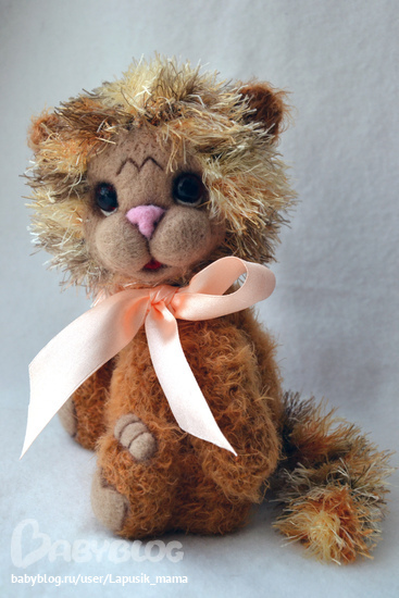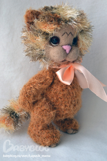 Рост 19см. Связаны из травки и фасонной пряжи, лапки и голова на шплинтах, шерсть, гранулят. У котенка армирован хвостик.
