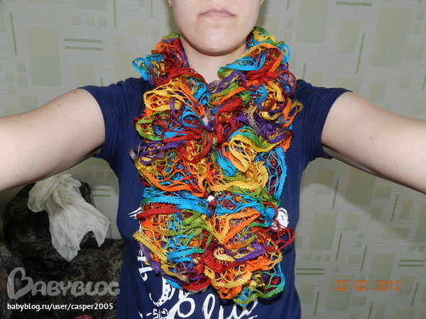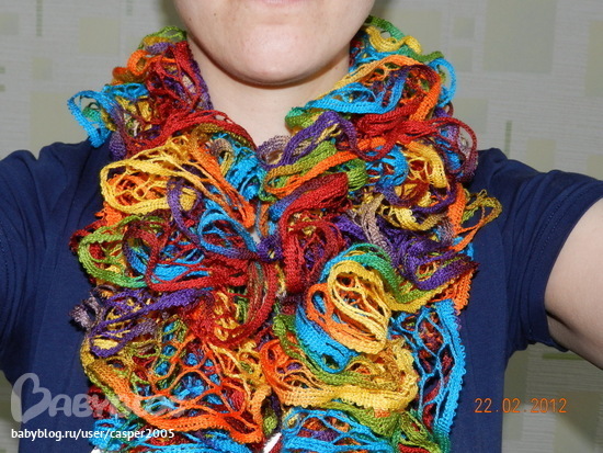 Наташа, шарфец - отпад!!! Очень позитивный!!! Я из таких ниточек планирую юбчонку для своей девчонки связать.