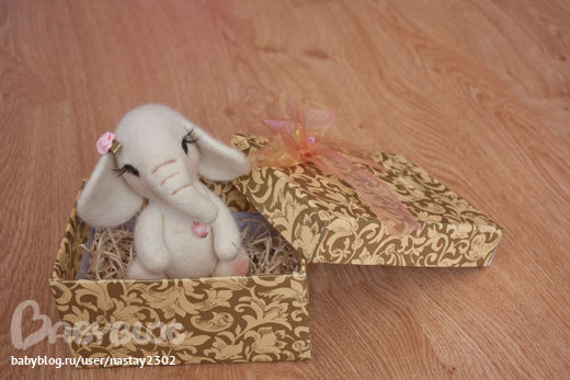 Росточком 12 см., сваляна из шерсти, тонирована пастелью, глазки - пластика.