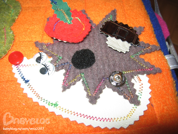 Ежик собирает яблоки (кнопки) и грибы (липучки) .