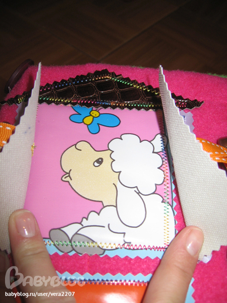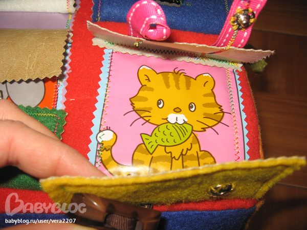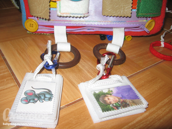 Под кармашками-застёжками есть КАРМАН на молнии, в котором на двух лентах-кольцах карабинами пристёгнуты "мини-книжки".