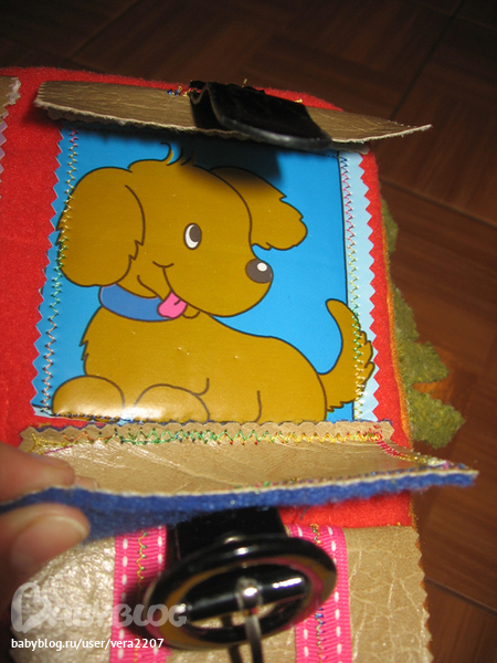 Домик ослика ("дверь" - пуговица, "крыша" - пирамидка-липучка).