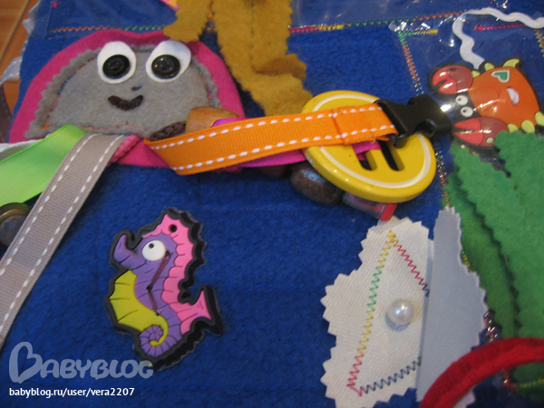 Колечки, за которые нужно тянуть для "движения" рыбки и краба.