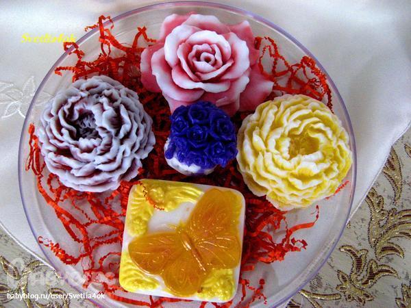 Все мылки обогащены маслам. Ароматы разные: розовый букет, фрезия, бамбук, белый лотос и зеленый чай.