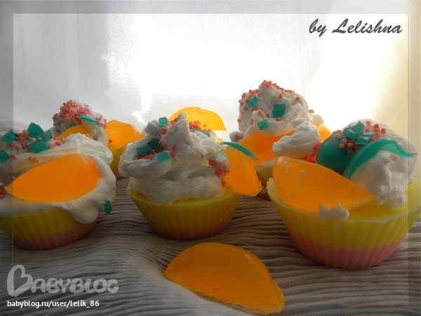 Я пока только пирожные рассматривала - думала, что настоящие! Сижу, слюни пускаю и думаю - ну какая ж вкуснота! Вот хоть бы попробовать! А оно мыло ))) Красота!