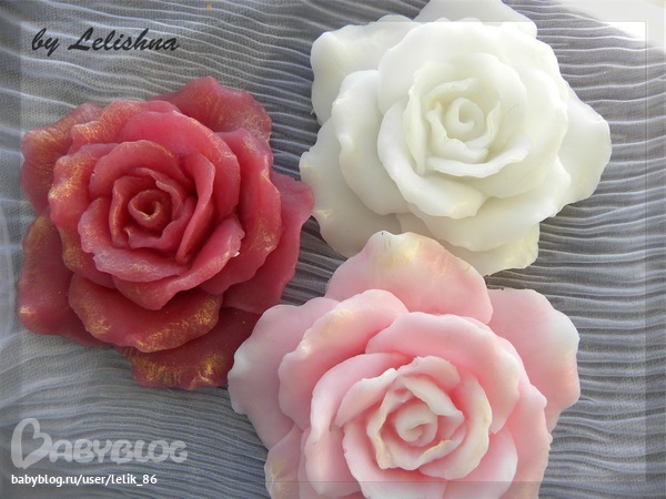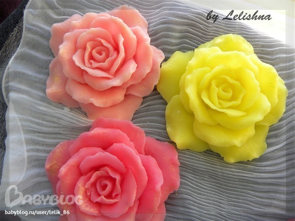 а еще вчера приобрела формочку роза, симпатишная она)))) ароматы пион, белая орхидея, и даже черешня и лимон))))