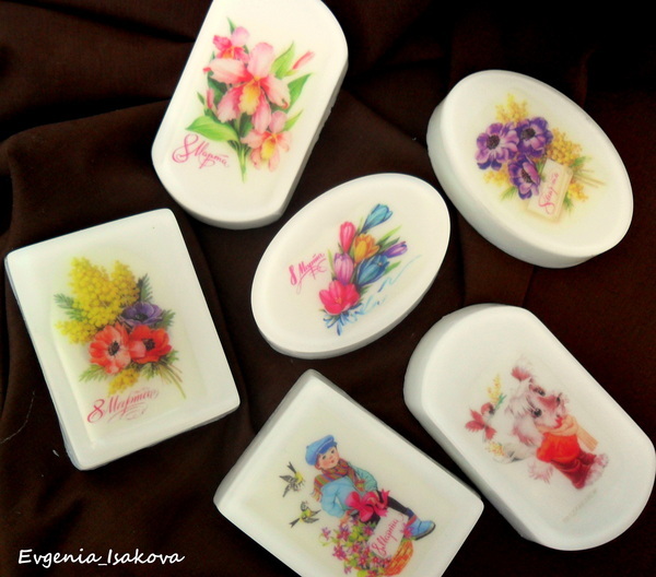 Мыло и косметика своими руками...наступила у меня:))) Делаю их с огромным удовольствием! Есть заказы именно на открытки. Но эти заказы поистине в радость! Хотя поиск картинок занял больше времени, чем изготовление самого мыла. Но ведь поиск, подбор, обработка и распечатка картинок это ведь тоже творчество, правда?)