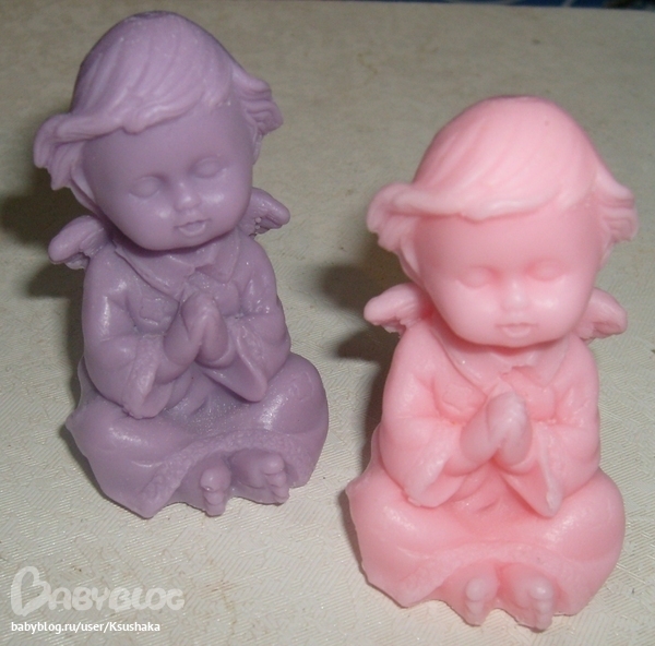 ангелочек небольшой - всего 30 гр)) форму сделала сама)) масло ши, ароматы вишня и малина)
