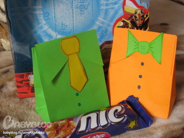 Изделия из бумаги, папье-маше, квиллинг.Нашал на просторах инета, выкройки и смастерила вот такие рубашки к 23 февраля...жалко, что не было скрапбумаги, чтобы сделать галстуки, пришлось обойтись просто цветной бумагой.