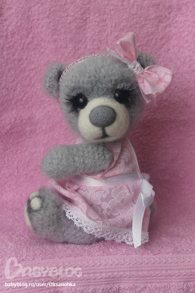 Игрушечный мир - животныеМалышка Милана, очень нежная мишутка. Рост 25см, связана из фактурной пряжи, голова, лапки на шплинтах, в пузике гранулят и зерна кофе. Вся одежда снимается.