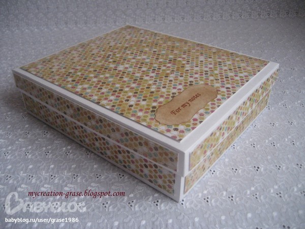В соответствии с выбранным стилем подбирала бумагу и декор. Ткань на обложку предложила заказчица, а ее слово, как известно, закон:) поэтому старалась как-то смягчить темно коричневый цвет и мужской рисунок и придать обложке немного женственности, ведь органайзер предназначается именно для девушки. Еще одной просьбой было сделать для органайзера коробочку. Размер коробки 24,5х20,5. Размер органайзера 17х21. Четыре разделителя, два кармашка для мелочей на форзацах - вобщем, стандартный набор:)