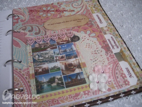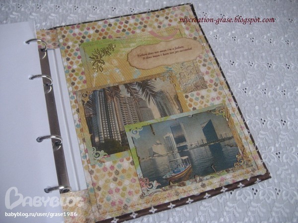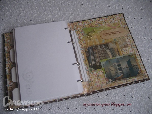 Для коллажей в органайзере использовала фото Эмиратов и немного картинок с интерьерами в восточном стиле, чтобы придать восточный колорит. На форзацах просто фото Эмиратов, закрепленные в подложки.