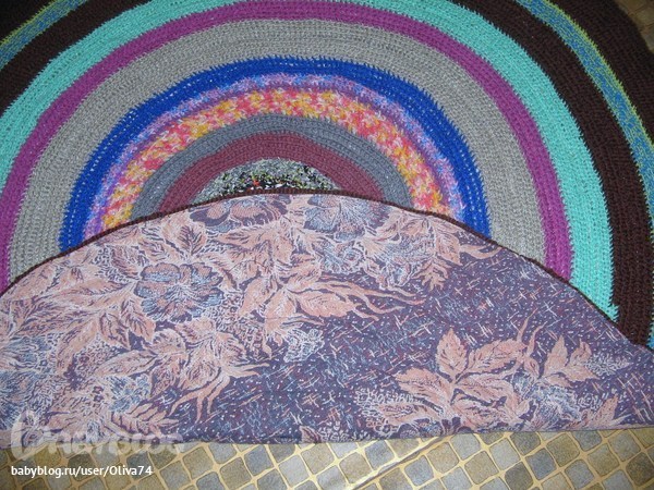 Так же сделала подклад из старого гобеленового покрывала,простегала коврик на машинке и вот что получилось, Диаметр 125 см. Дочке нравится.