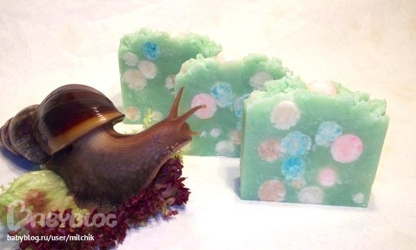 Клевое и яркое мыло! Особенно мне с улиткой понравилось) Улитка случайно не мыльная?)