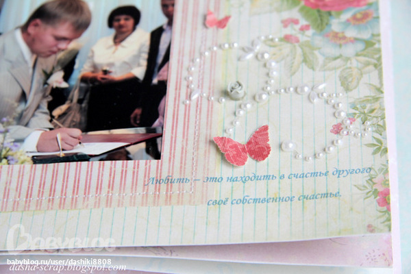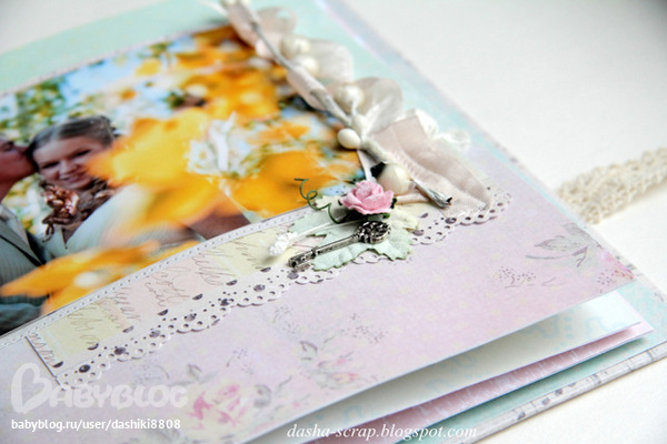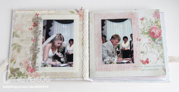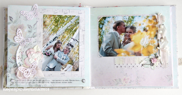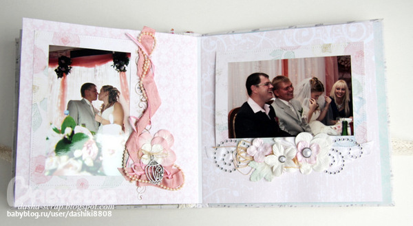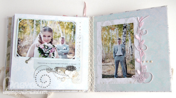 Такой нежненький альбом!!!!!!И бумага классная!!!!!Супер!!!!!!!А я вот никак не сделаю свой свадебный альбом:)
