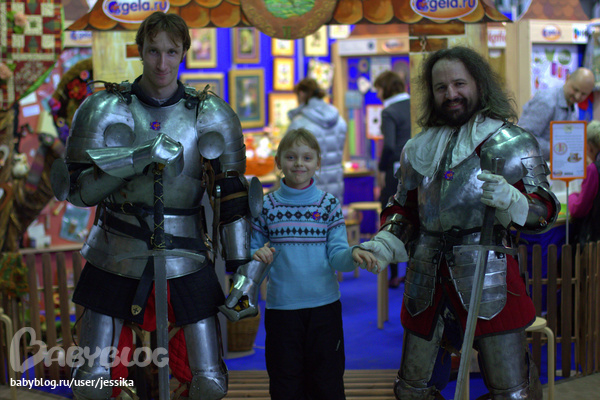 Вот эти "рыцари" стоят при входе стенда Гела и предлагают с ними сфотографироваться. Аринку уговорили, а я еле отмахалась, со словами, что у меня свой рыцарь)))