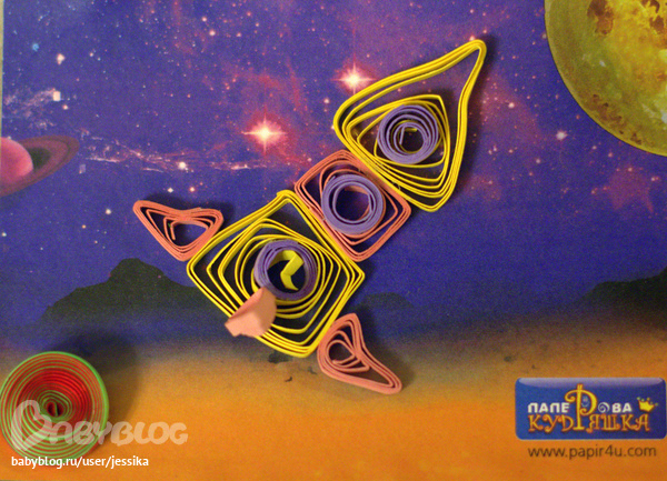 Наш космический корабль крупным планом (ей, как девочке, предложили розочку сделать или бабочку, а Аринка у нас не ровно дышит ко всему космическому, вот и сделала такой агрегат) -