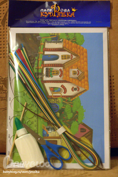 Купили там же обалденный набор для квилинга! Там картинка, на неё "сажаешь" квиллинговых героев (есть подробная инструкция), клей, ножницы, бумага и палочка для накручивания. А! Ещё рамочка для готовой картины! Я таких наборов ещё не видела. Это Киевская компания Паперова Кудряшка (сайт у них почему-то не работает).