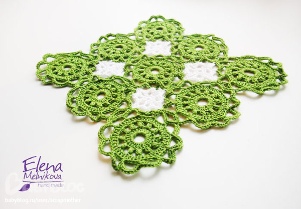 Подробным образом рассмотрим соединение мотивов между собой, а так же Вы получите совет и сможете используя свою фантазию, крючок и пряжу из квадратной салфетки сделать салфетку иной формы.
