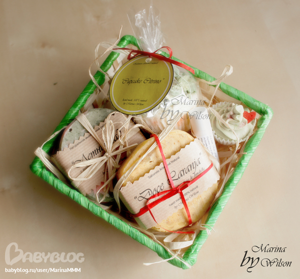 ага - не стала паковать их в цветные корзиночки... и опять же таки, решила обойтись натурального цвета наполнителем, а то как-то очень пестро смотрится упаковка, и мыло теряется...