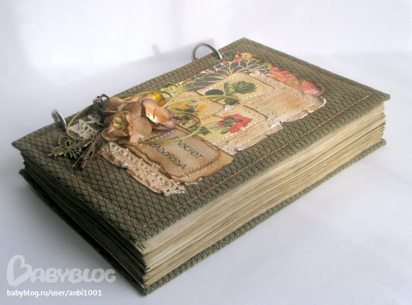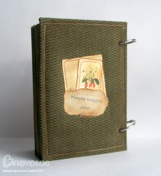 На кольцах, листы тонированы кофе, обложка мягкая тканевая.