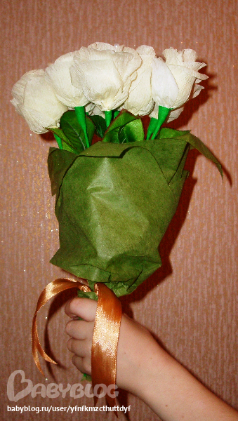 Этот букетик очень просто оформила. Совсем не хватает фантазии........
