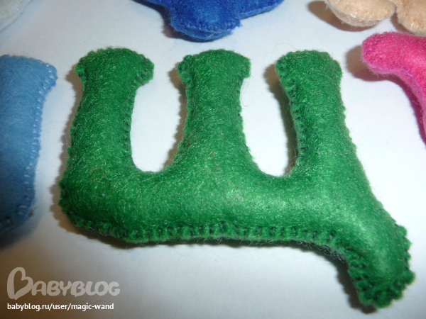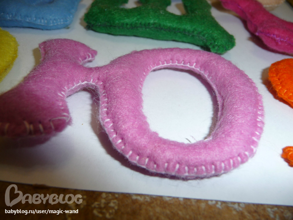 Очень понравилось работать с фетром. Хотя и заказывала с одного магазина и одной фирмы и толщины фетр, но по своим свойствам они оказались разные. Некоторые отличные, другие же как растягивались что ли. Особенно бирюзовая буква "О" (((