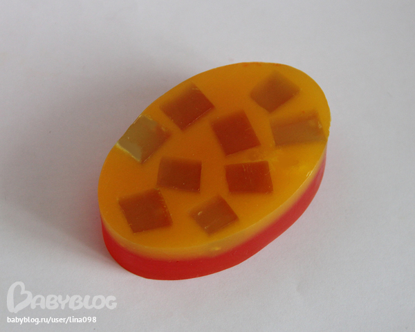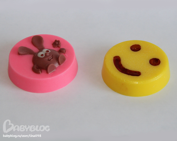 Это для племянников-детское, из органической основы и с ароматами малинового варенья и бубль-гума, смайлик с переливающимся глиттером (на фото не очень видно...):