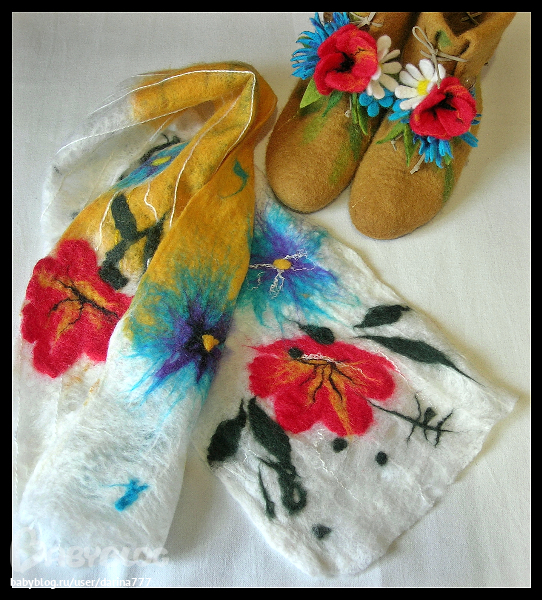Эти валенки исполнены на заказ, для мамы и ее дочки 2 годика в одном стиле,уезжают во Францию, г.Париж. К валенкам был исполнен легкий шарф паутинка " полевые цветы"