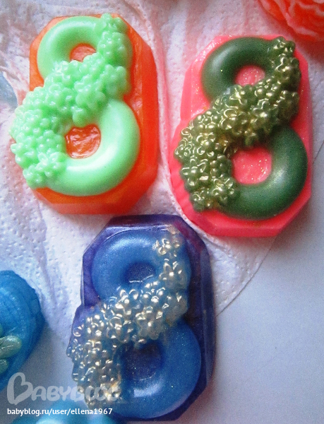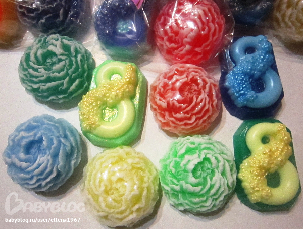 О, да-я эту форму уже видеть не могу)))) Сегодня пол дня с ней возилась-плохо, что форма одна, а залить надо 8, например.. А Ваши масштабы поражают)))) Я сегодня сделала 30 мыл-устала так, что просто караул...Ребёнок играл сам весь день, домашние дела вот только закончила((( Как Вы справляетесь?