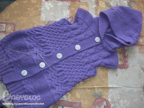 классно , я вот тоже его задумала связать, как закончу свои недовяэы.... а какая у вас толщина нити и сколько петель вы набирали?