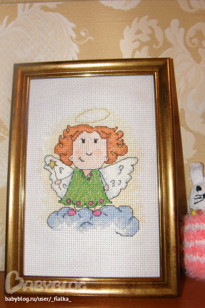 Долго выбирала с чего начать и остановилась на этой вышивке. на фото не видно что нибм и вокруг ангелочка золотое свечение.