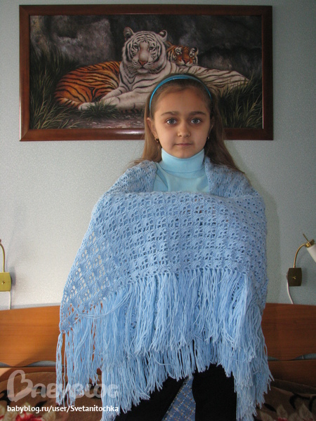 Спасибо, шаль можно такую связать, несложно, я ещё красивее видела, мне очень нравятся шали, связанные спицами, они ювелирнее!!!