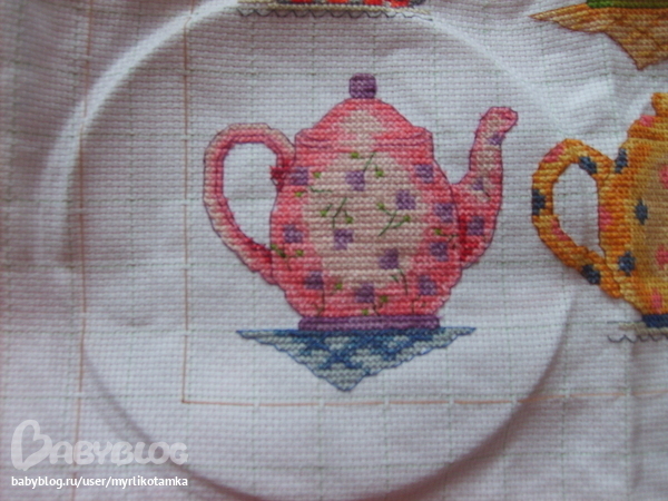 Пока есть пять минут рассказываю - по городу гуляет корь, Степу после ОРВИ в сад не отпустила... Дома минидетский сад. Мой гипер активный Степан за день умудряется трижды перевернуть квартиру, а я, соответственно, трижды ее убрать... Аркаша растит зубы, в купе с бронхитом и насмотрком - это ад! С мужем отношения как качели, то вверх то вниз.... мама в отпуске в последующим выходом на пенсию, папа уже давно на пенсии, андрей на больничном... Дома санта-барбара...Вышивала за две недели мало, не шли у меня чайники и впервые у меня отвратительная изнанка.
