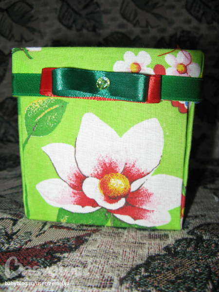Тёте уже подарила, т.к она живет в деревне, а в эти вых в гости к нам приезжали. Она даже и не догадалась, для чего эта коробочка предназначина. Пришлось объяснить))) а когда узнала, что она не куплена, а я её сделала сама, волобще была в восторге!! мне было приятно)))