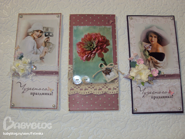 Еленка в Рукоделие 14 лет Открытки к 8 марта. Сделала к празднику открытки коллегам на работе. Девушек на картинках подбирала специально похожими на тех кому открытка предназначается. Фото правда не очень. Посмотрите еще 20 записей на эту тему Отменить Ответить Юлия красиво! 07.03.2012 Ответить Еленка Спасибо! 09.03.2012 Ответить Н@т@алья Красота. Где картинки брали? 06.03.2012 Ответить Еленка Cпасибо. Картинки нашла где-то на просторах интернета. Если надо могу вам скинуть. 06.03.2012 Ответить Н@т@алья Если можно в личку. Благодарю. 06.03.2012 Ответить С наступающим девочки)))) Медведь Михаэль ищет новый дом) Чаты Беременных Выберите чат: Январята-2026 Февралята-2026 Мартята-2026 Апрелята-2026 Майчата-2026 Июнята-2026 Июлята-2026 Августята-2026
