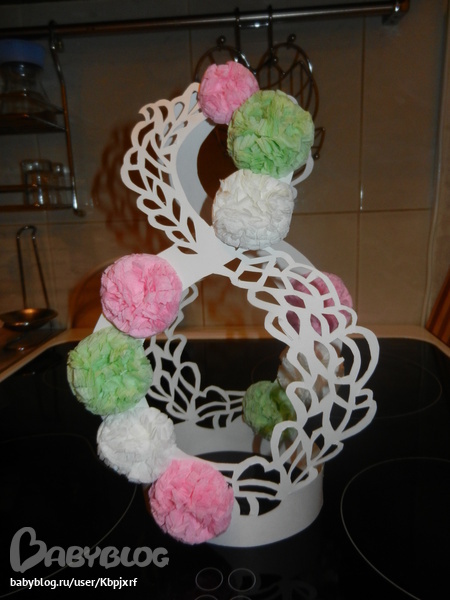 а потом прикрепили на степлер наши готовые цветочки
