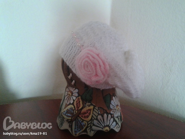 .Вязала на глаз ,без схемы)) Беретка на девочку 9 лет.Набрала по 20 петель на каждую спицу (4) итого 80 петель. Вязала резинку 5 см. Потом еще прибавила на каждую спицу по 10 петель (прибавляла через 2 петли).Узор: лицевыми три ряда и четвертый ряд (лицевая и изнаночная)и повторять до 10 см. После убавляла петли до тех пор пока на каждой спице не останется по 20 петель.И стянула рабочей нитью.