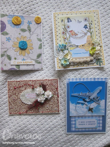Открыточки сделаны для папы, мамы, подруги с которой я всю жизнь, которая скоро родит нам чудесного мальчугана!