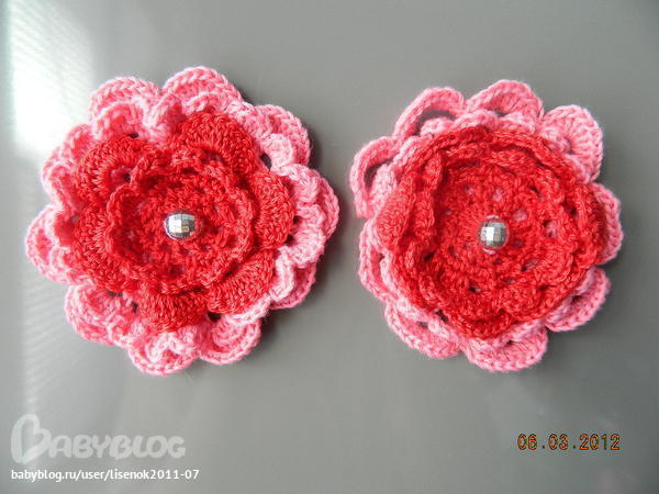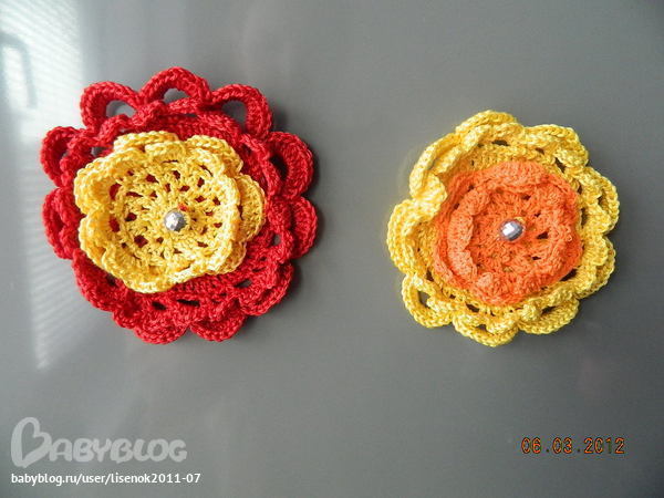 Cветланка (Цветок-пион). Давно была мысль сделать магнитики (еще с 14 февраля засела), но городок у нас маленький и то, что нужно (а именно магнитная лента) находится не сразу! Нашлась она только в одном магазине и к началу марта... В общем, примерно такой цветок я и хотела, но ажурно не вязала еще ни разу, поэтому подробный и понятный МК был весьма кстати))) В процессе цветок у меня слегка видоизменился, так как нитки были тонкие и так пышно не получалось (да в принципе и не нужно было).