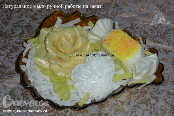 Марина в Рукоделие 14 лет Сегодняшние заказы! Мыло и косметика своими руками Посмотрите еще 20 записей на эту тему Отменить Ответить Катюнчик очень красиво!!Шикарно..а формочка для розочки пластиковая??? 07.03.2012 Ответить Марина Спасибо. Формы силикон. Из пластика такую розочку не вытащишь. 07.03.2012 Ответить Татьяна Оформление понравилось!Ну и мыло тоже отличное!=) 07.03.2012 Ответить Марина Cпасибо! 07.03.2012 Ответить Натали красивые наборчики! особенно розовая роза понравилась, очень нежная) 07.03.2012 Ответить Марина Cпасибо! 07.03.2012 Ответить Катя-Катерина Очень нежные наборчики) 07.03.2012 Ответить Марина Cпасибо! 07.03.2012 Ответить Юлия Очень очень красиво, стильно и нежно! 06.03.2012 Ответить Марина Cпасибо! 07.03.2012 Ответить Наталья Нежно и красиво! 06.03.2012 Ответить Марина Спасибо! 06.03.2012 Ответить Девочки нужен совет, но срочно!!!! четкий рецептик мыла....в студию Чаты Беременных Выберите чат: Январята-2026 Февралята-2026 Мартята-2026 Апрелята-2026 Майчата-2026 Июнята-2026 Июлята-2026 Августята-2026